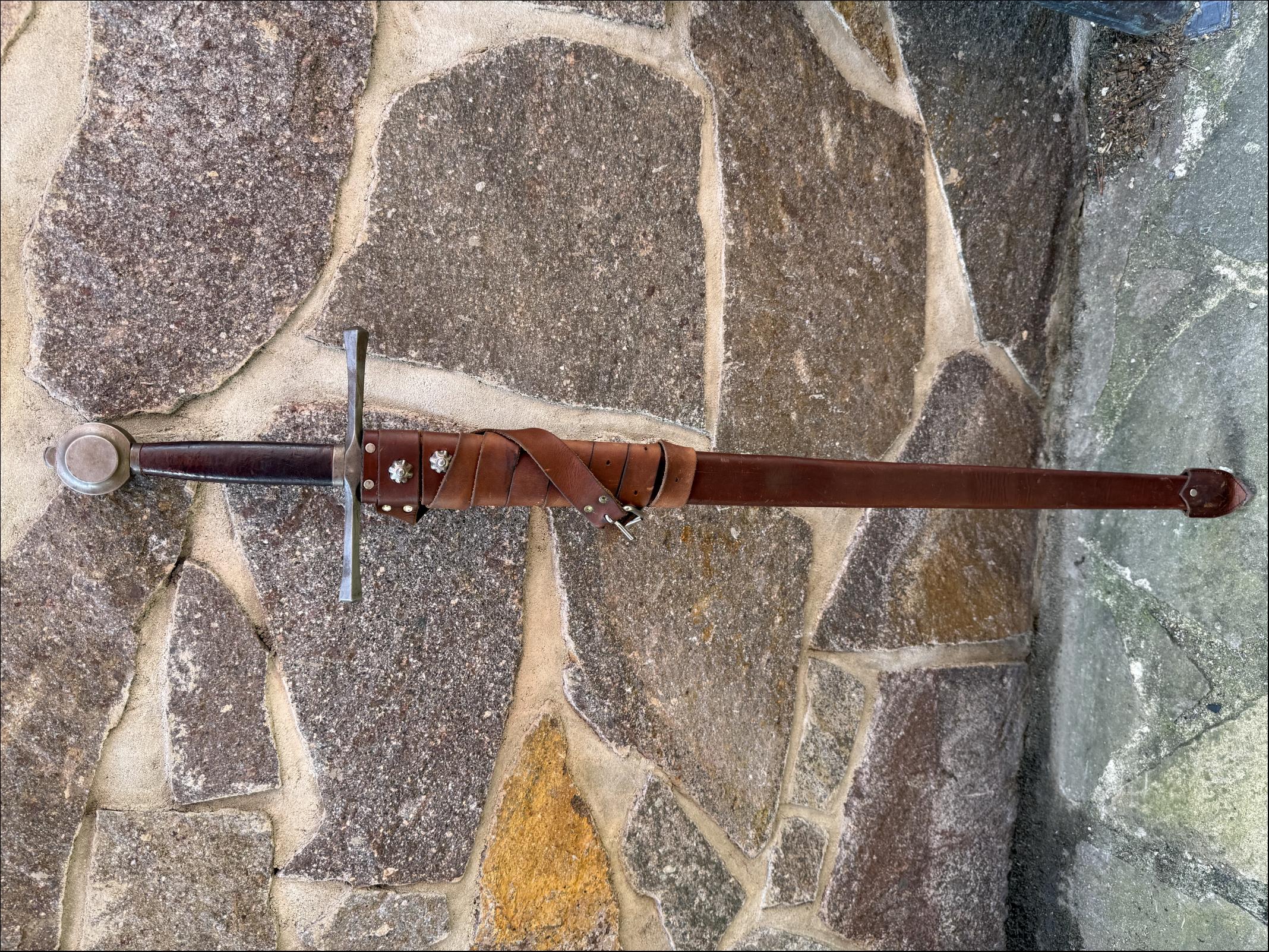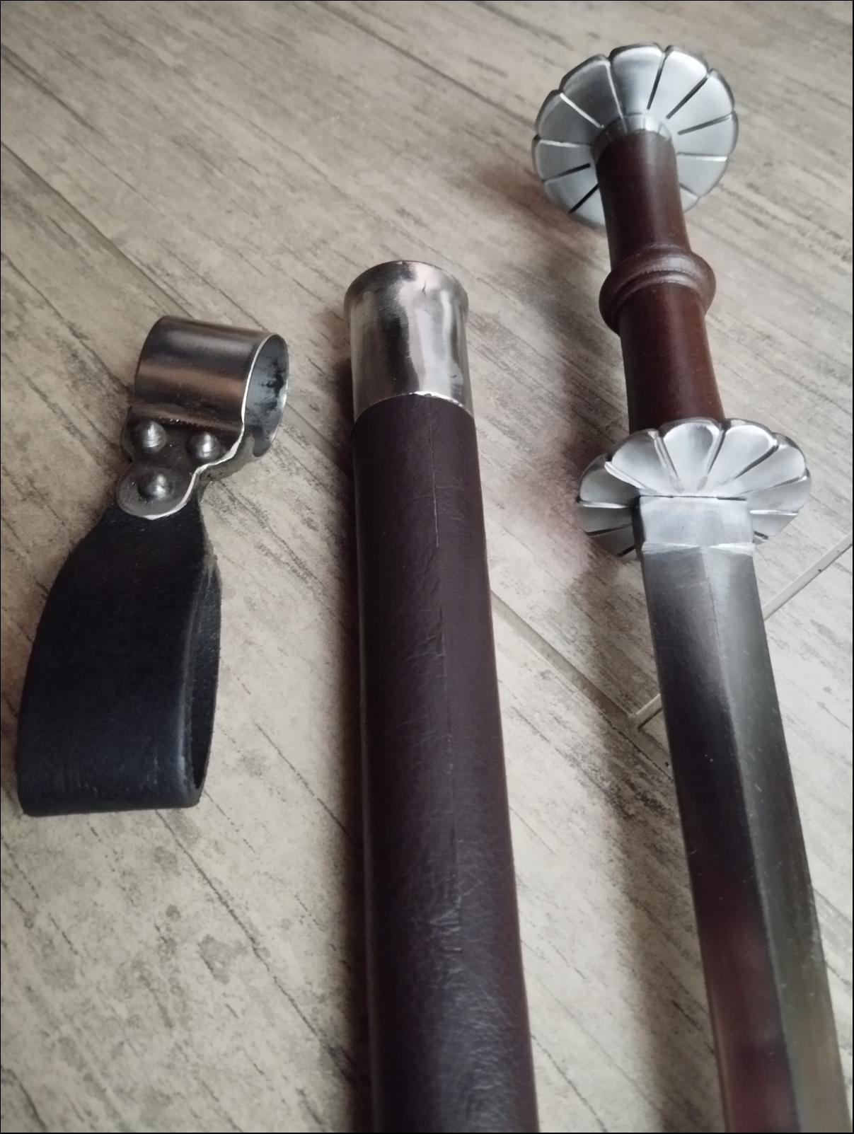 Pěkný stav, skoro nepoužit. K meči je i na zakázku dělaná pochva s opaskem.