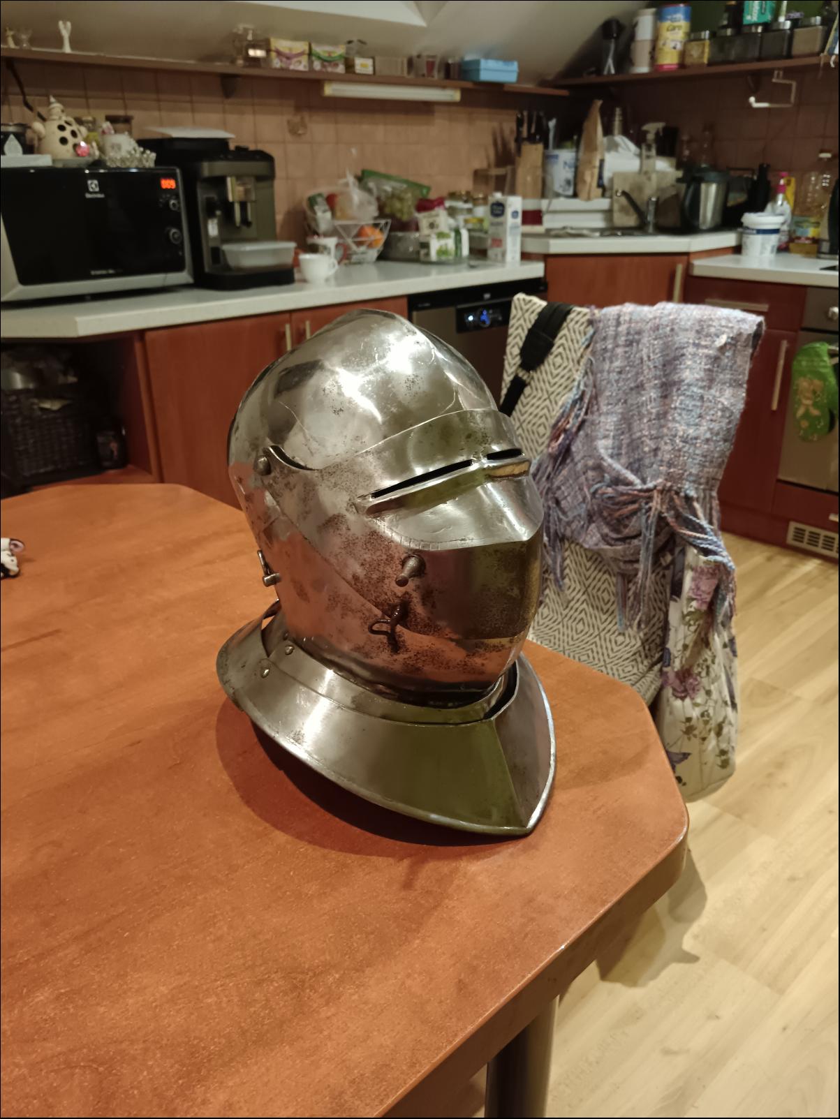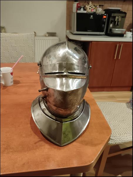 Cena: 4500,- Kč Nabízím v Česku kovanou přilbu, byla na jedné akci a jinak bydlí ve sklepě. Je skvělá, pevná, funkční, ale na naše měkké akce příliš těžká.