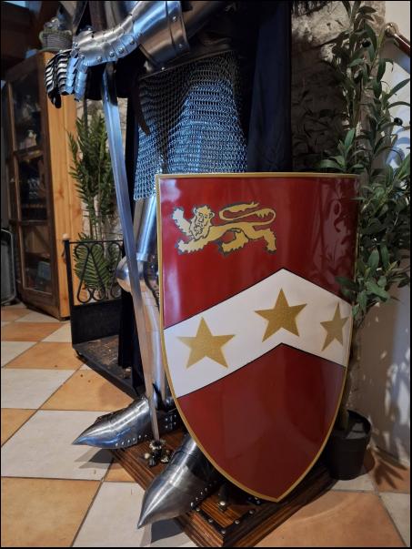 Cena: 2500,- Kč Kovový dekorativní štít, heraldický motiv.