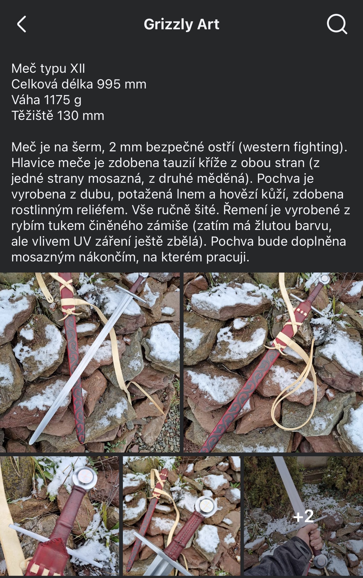 Text inzerátu: Do prodeje tímto dávám meč od GrizzlyArt, který poslední roky sloužil spíše jako dekorativní a ke kostýmu. Šermován tedy minimálně.