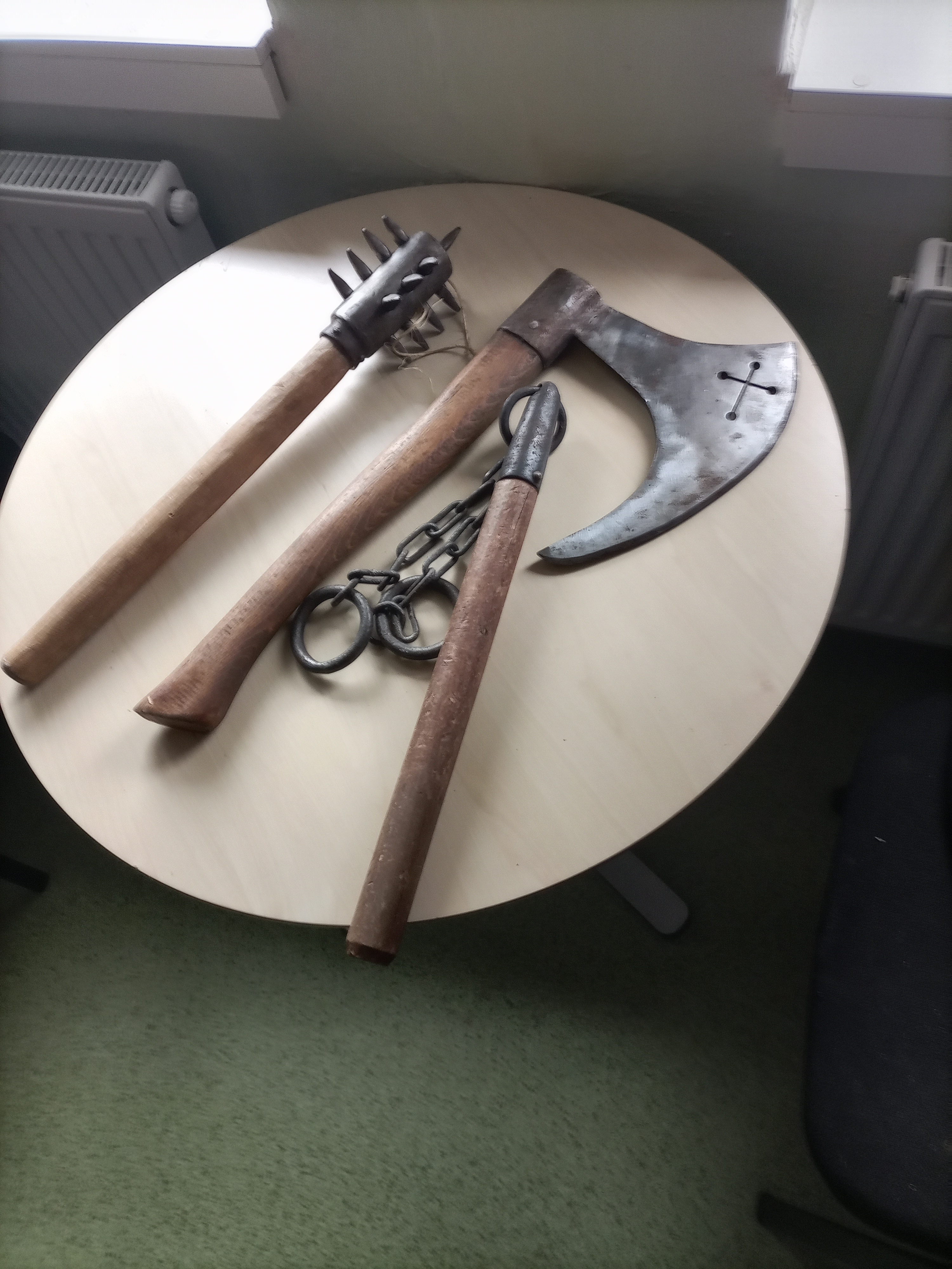 | Jméno: J.S. | Email: corado27 (zavináč) seznam.cz Sdílejte tento inzerát na Facebooku: | | Kategorie: Zbraně | Datum: 2025-11-23 12:14:16 | | Cena: NA,- | | | | Text inzerátu: Prodám starší meč d. 120 cm za 2000 kč, dlouhou sekeru za 900 kč, palcát za 600 kč, biják za 400 kč, sekeru za 800 kč  | Fotky: |