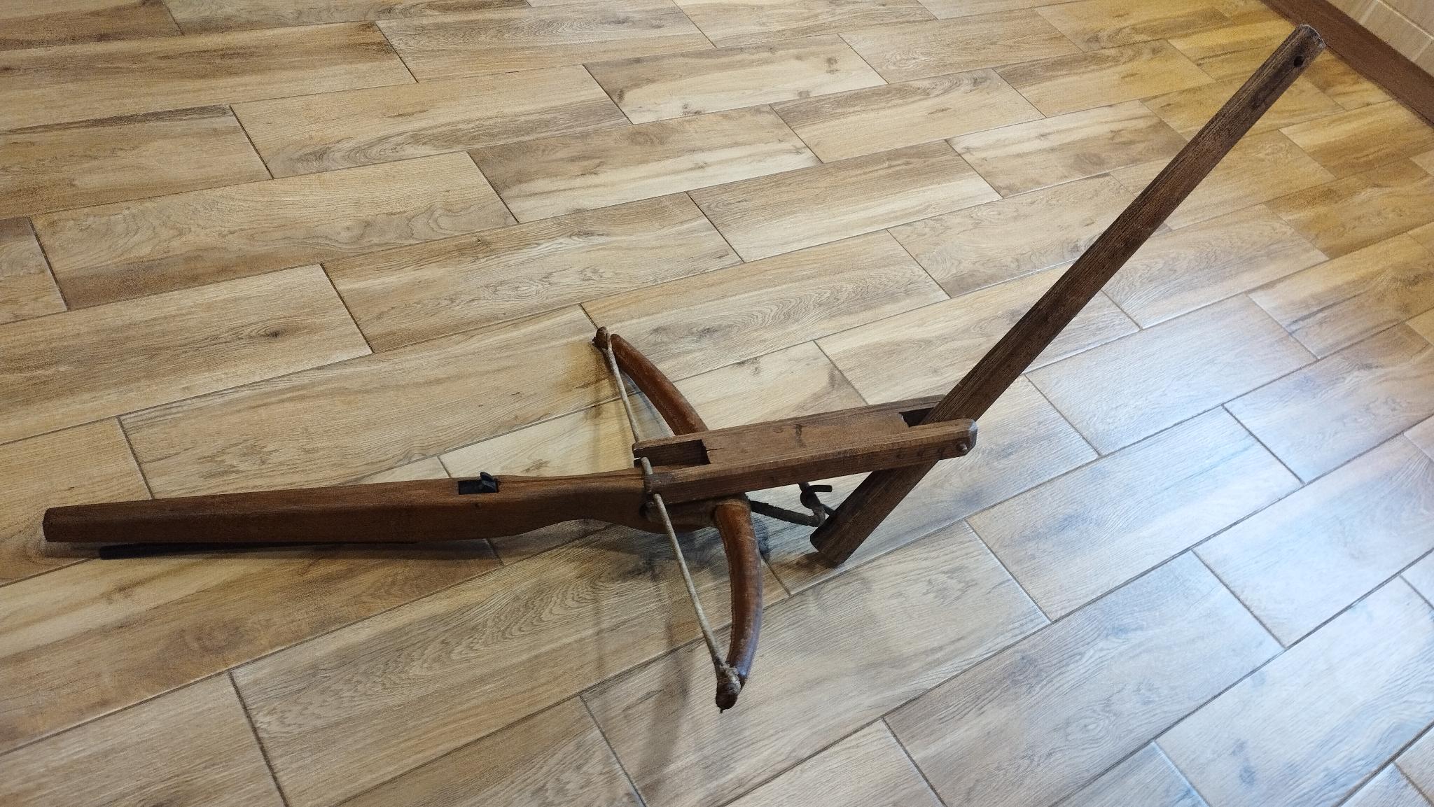 Text inzerátu: Prodám kuši. Plně funkční. Nátah cca 40kg. Přidám pákový nabiják. Výrobce bohužel neznám, ale před 2 lety ji repasoval pan Kácha. Cena 4000,- (+poštovné).