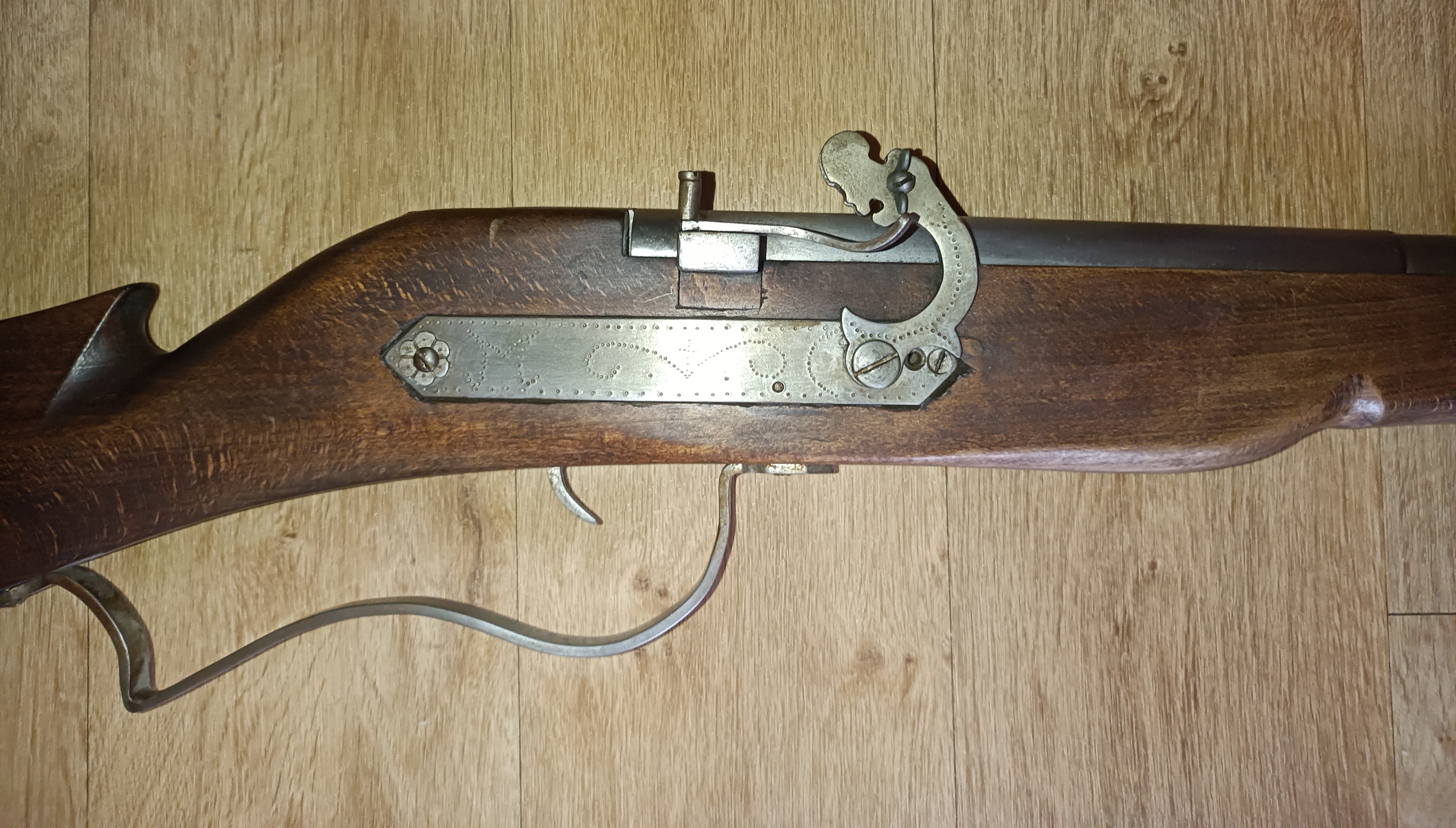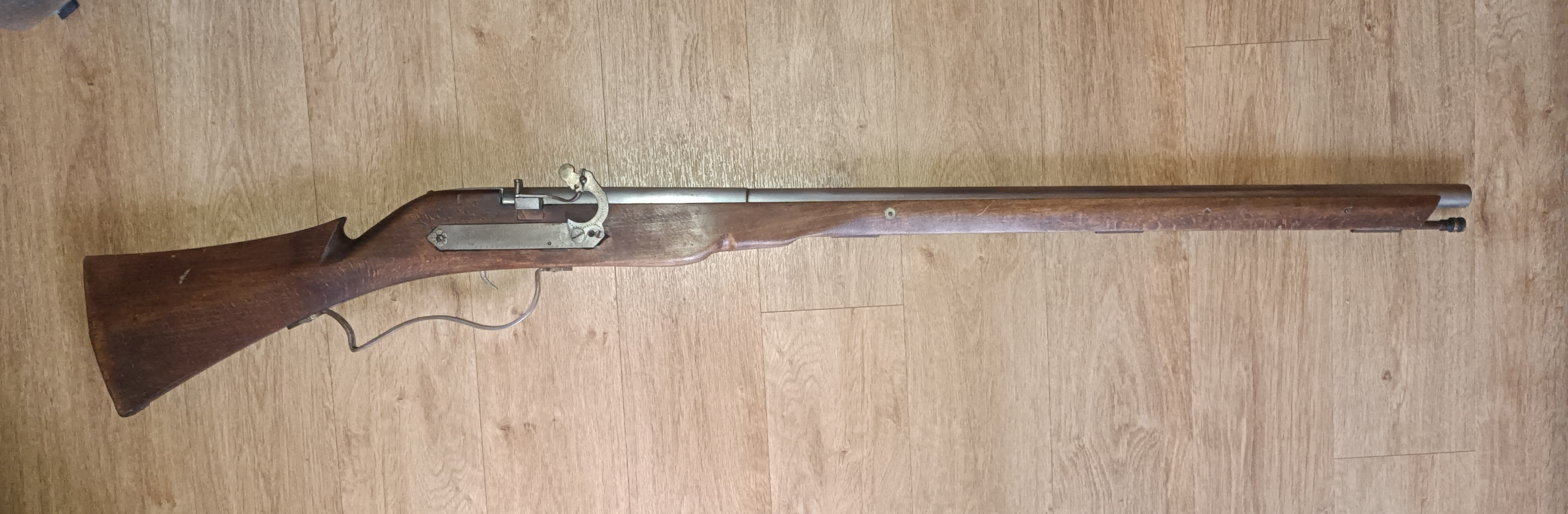 Text inzerátu: Nabízím doutnákovou mušketu s furketou a bandalírem. Bandalír na dodělání- přidělat váček na kule a osadit si prachovnice. Mušketa je tormentovaná, výrobce už si nepamatuji. Cena za komplet.