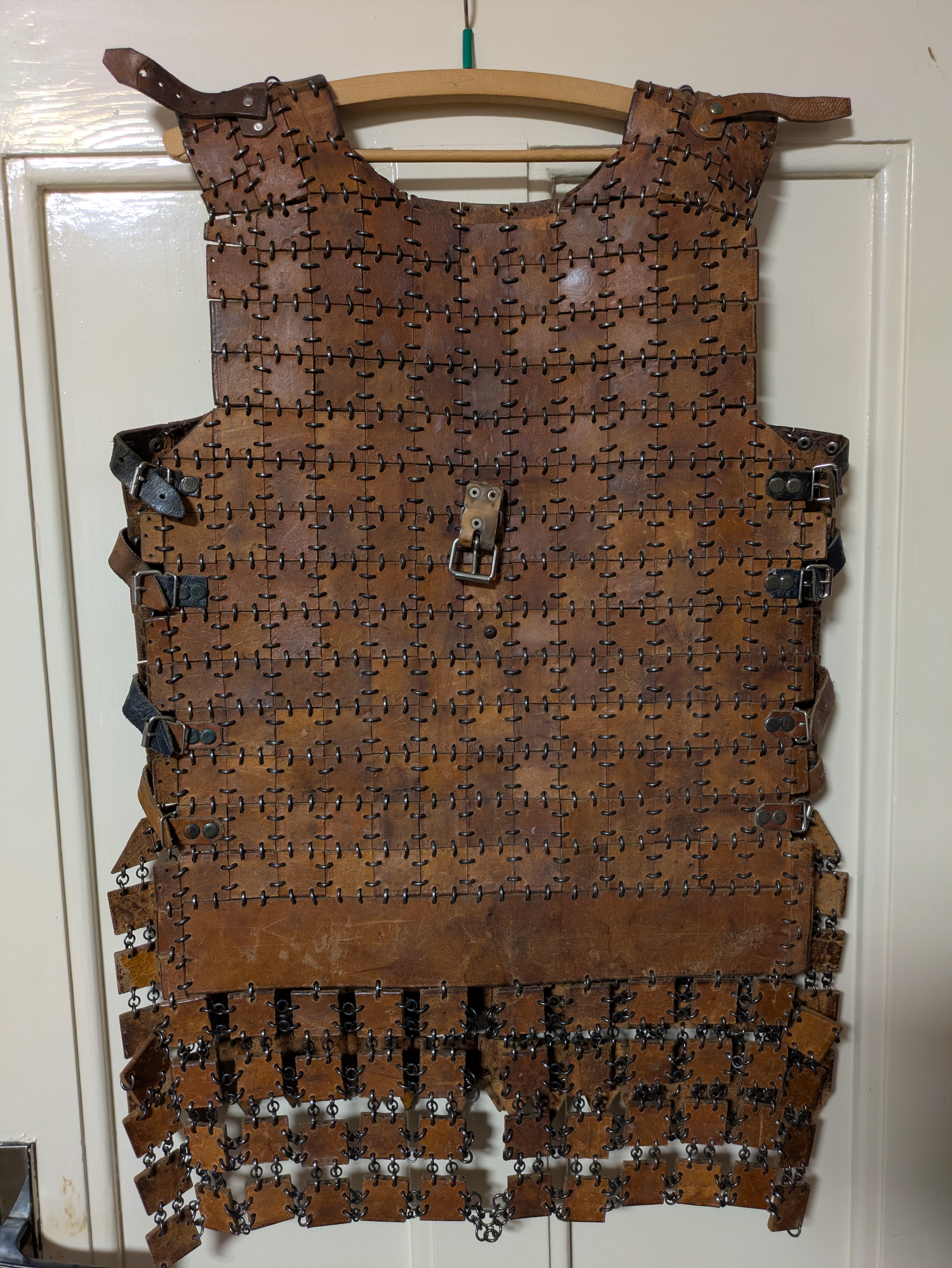 | Jméno: Filip Pokorný | Email: pokorny.filip (zavináč) email.cz Sdílejte tento inzerát na Facebooku: | | Kategorie: Zbroje | Datum: 2026-03-12 10:54:36 | | Cena: 5000,- | | | | | Text inzerátu: Prodám koženou zbroj viz foto. Šířka je cca 50cm, boky jsou upravitelné pomocí řemínků. Ideální pro chlapy střední postavy. | Fotky: |
