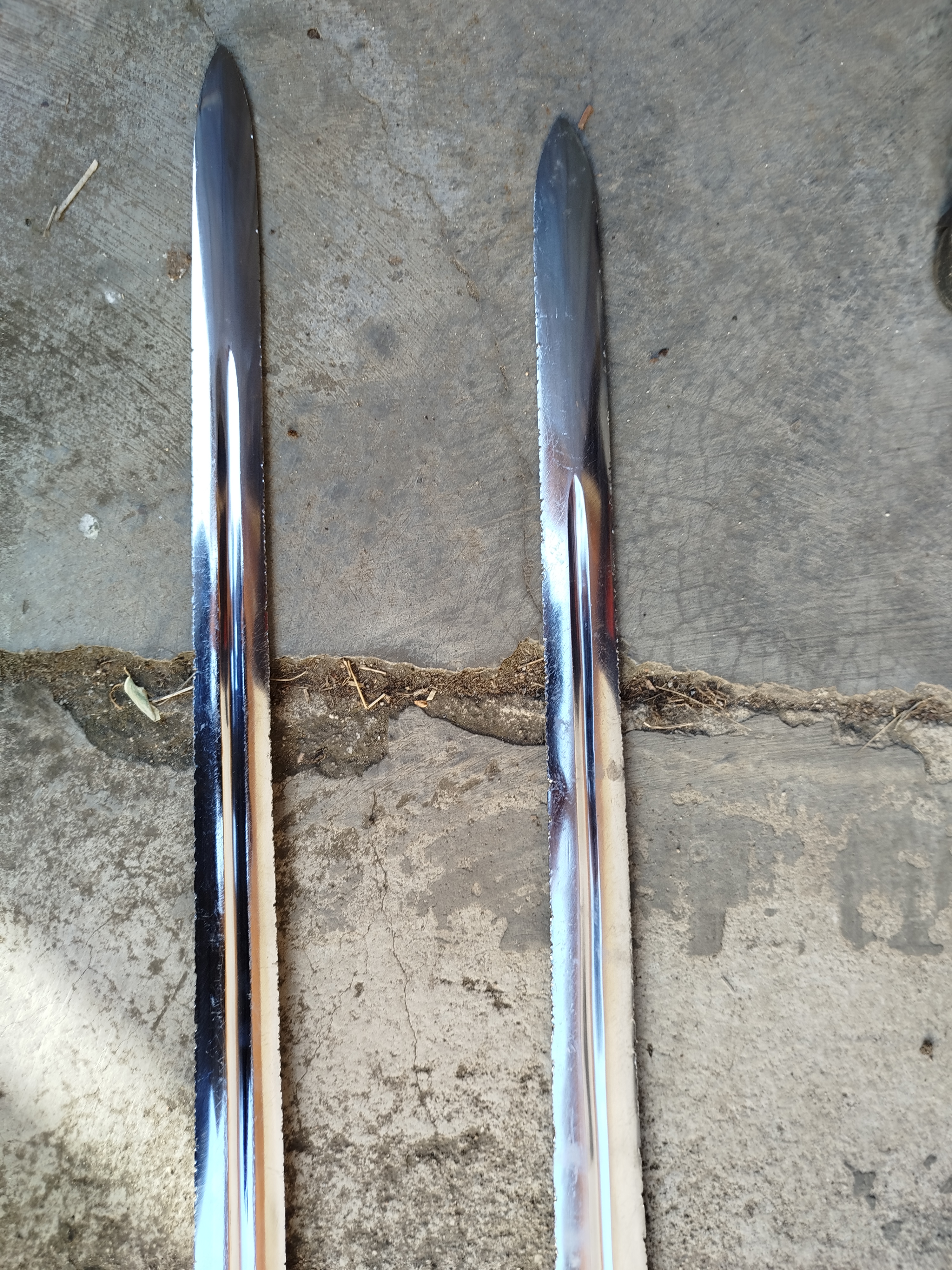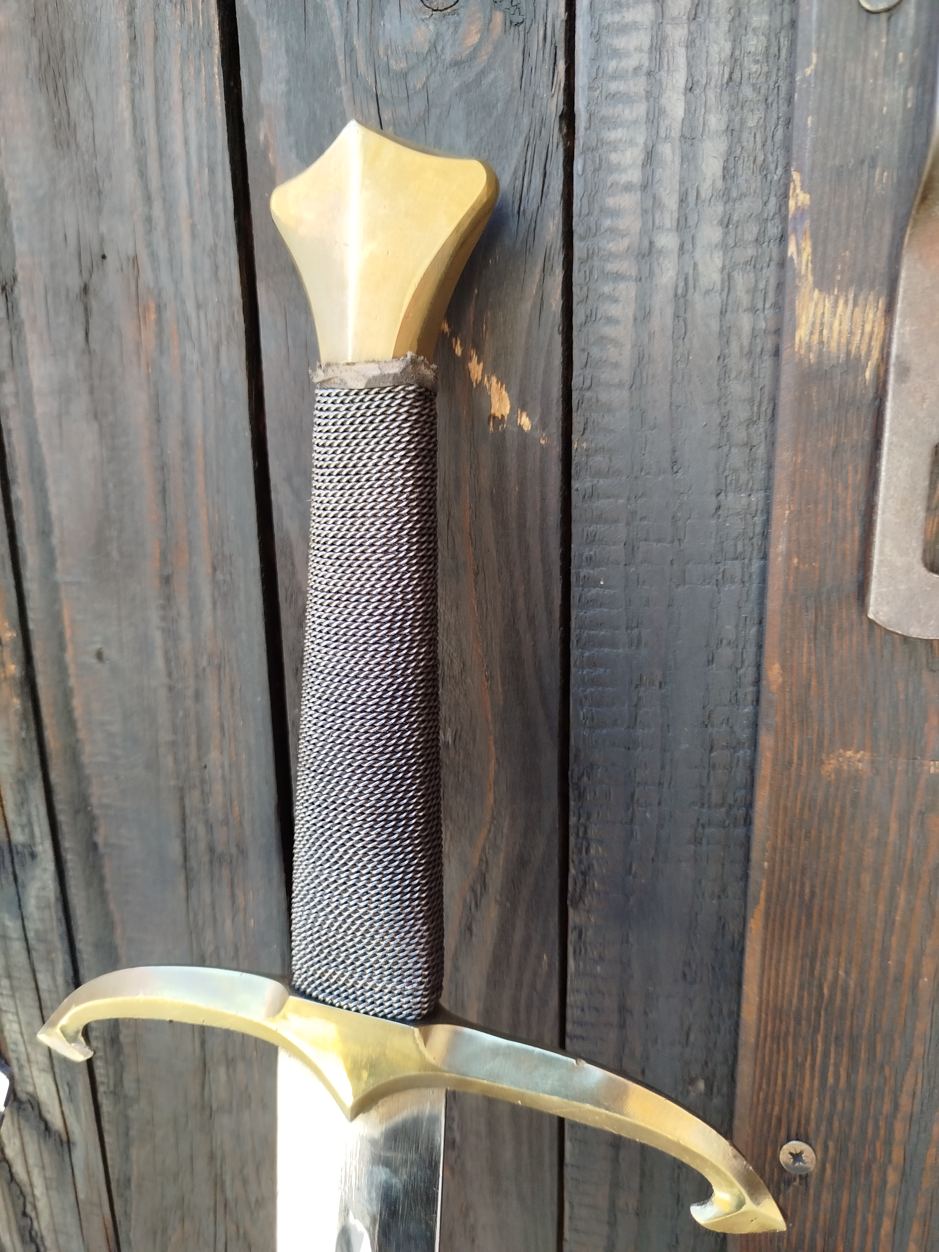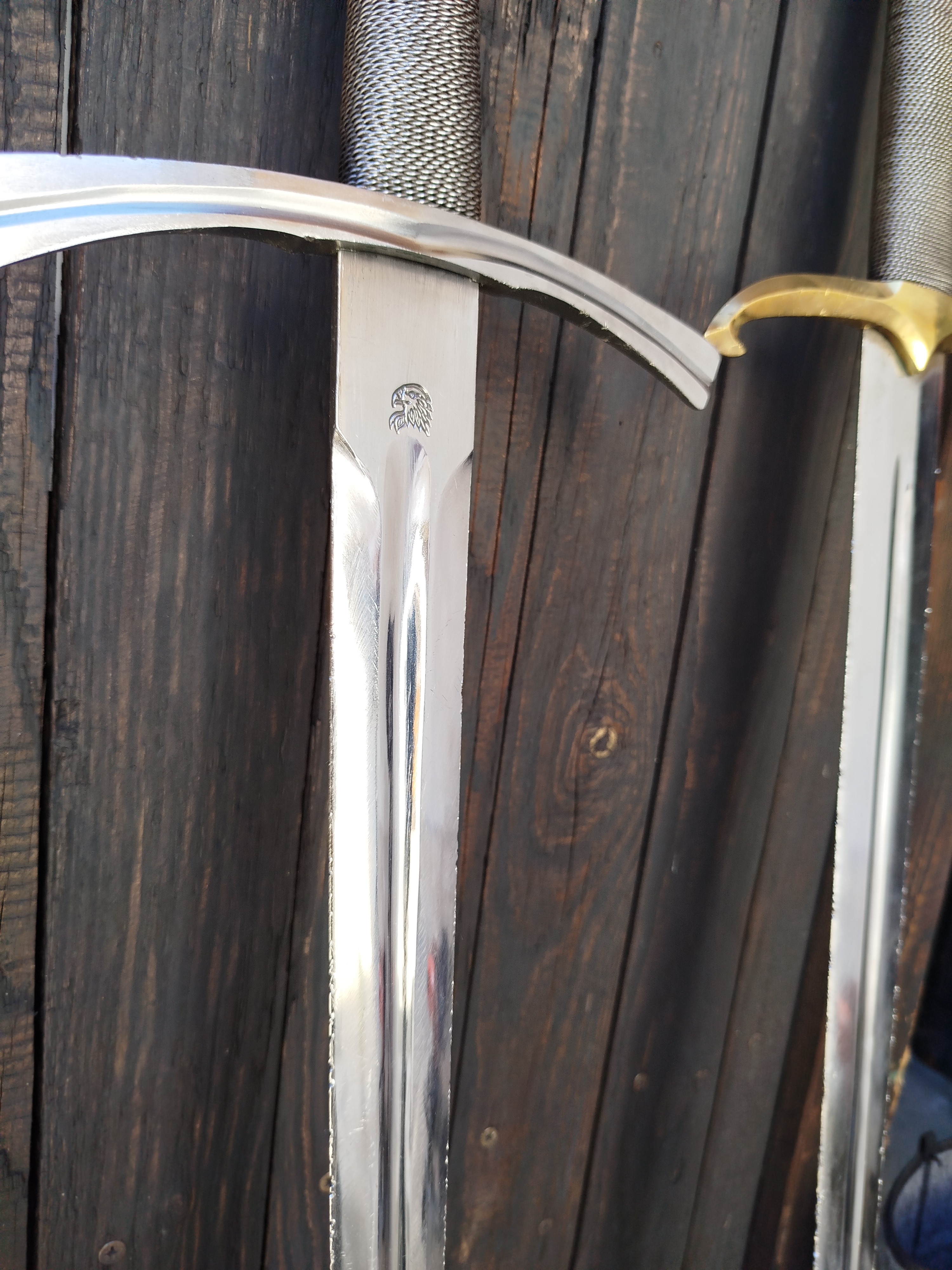 Text inzerátu: Meče šerm:S mosaznou hlavici délka celková 99 cm ,délka čepele 76cm.hlavice šroubovací váha 1,77kg cena 3800 Kč . Bílý meč s delším jílcem ( jedenapulrucni ) celková 100 cm délka jílce 25cm. Hlavice šroubovací. Váha 1,75kgcena 4600kc .meče jsou starší sermovane.osobni odběr 5 km od velkého Meziříčí. Soukromý prodej .