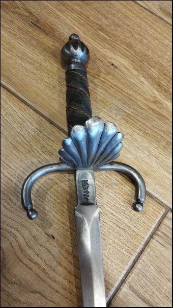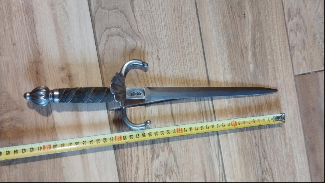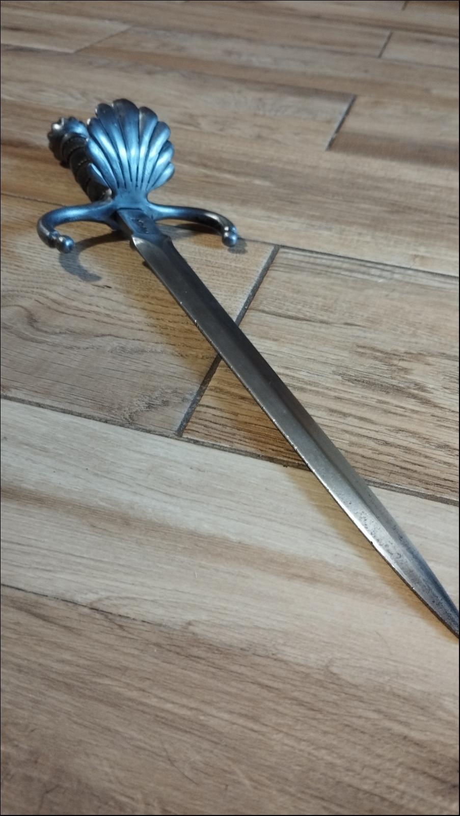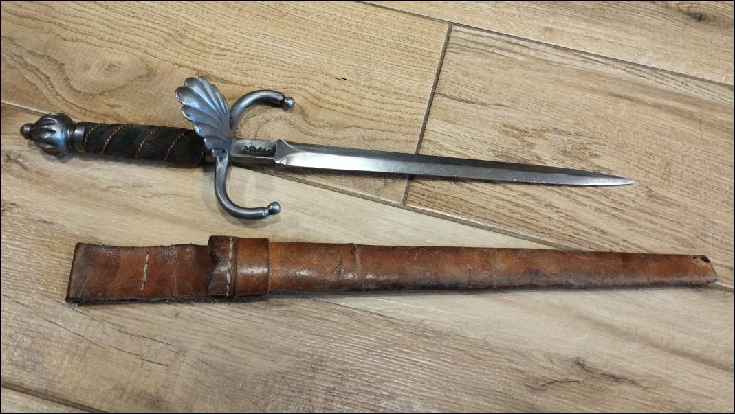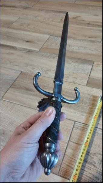 Cena: 4800,- Kč Prodám kovanou levoruční dýku na šerm. Výrobce Luděk Kalný. Délka 42,5cm. Váha 435g. Použitá, ale ve skvělém stavu. Kožená pochva v ceně. Cena 4800,- (+ poštovné).