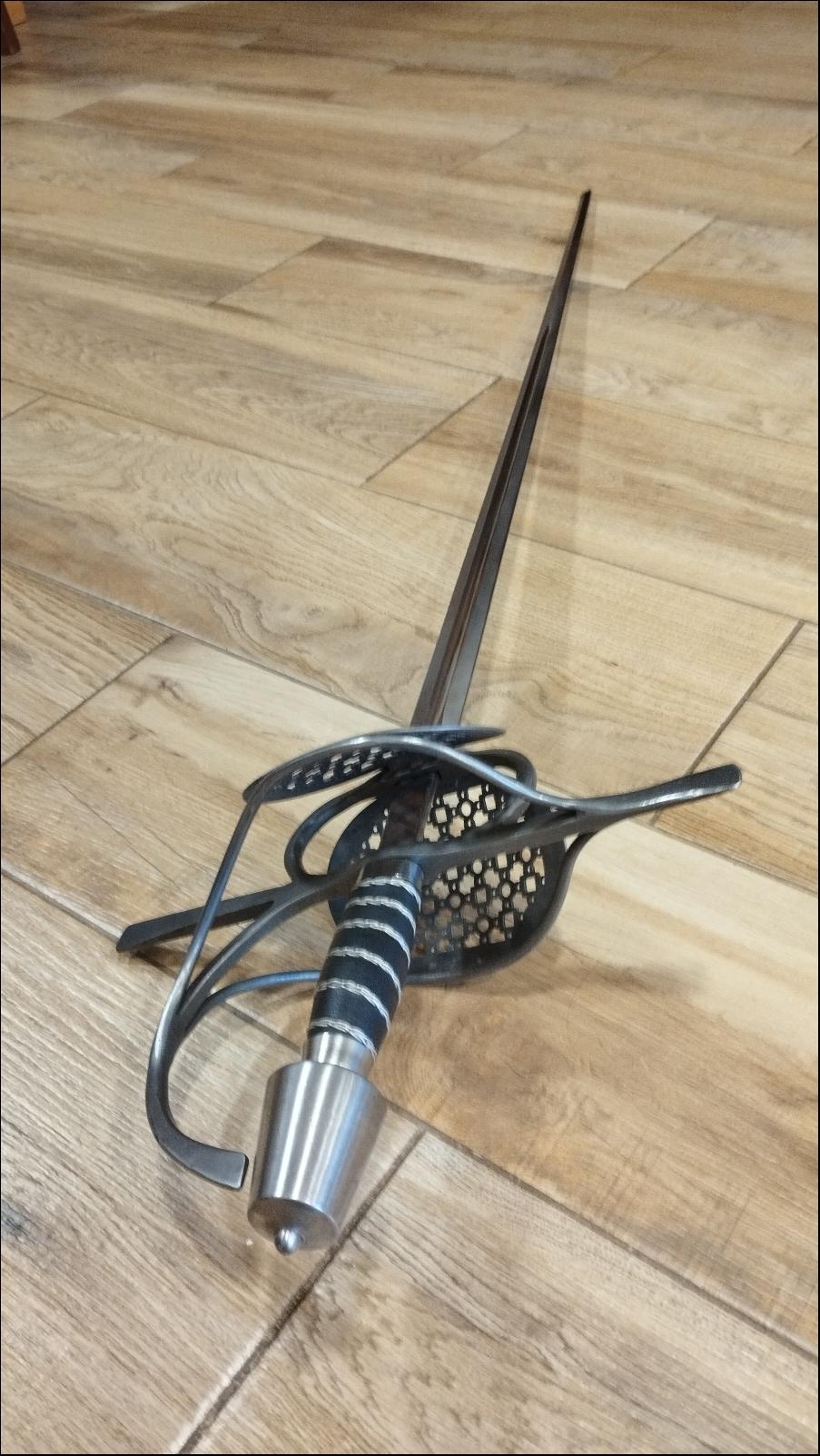 Cena: 5000,- Kč Prodám rapír na šerm. Výrobce Kronďák. Váha 1,38kg. Délka 107cm, čepel 90cm. Používaný, ale ve skvělém stavu.