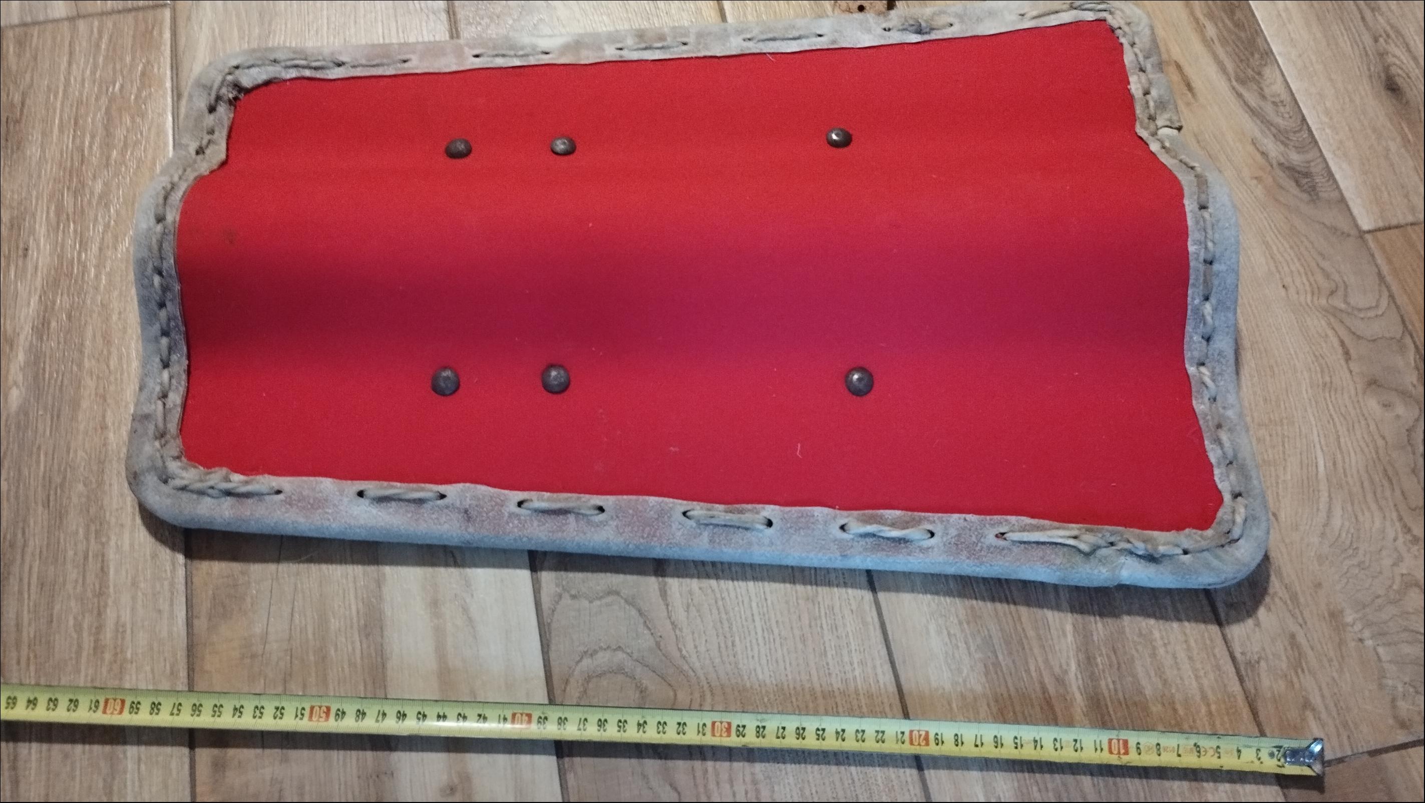 Cena: 3000,- Kč Prodám štít - pavézku na šerm. Rozměry 60x39cm. Okraje surovka, plocha je potažena plátnem. Nová nepoužitá. Cena 3000,- (+ poštovné). | |