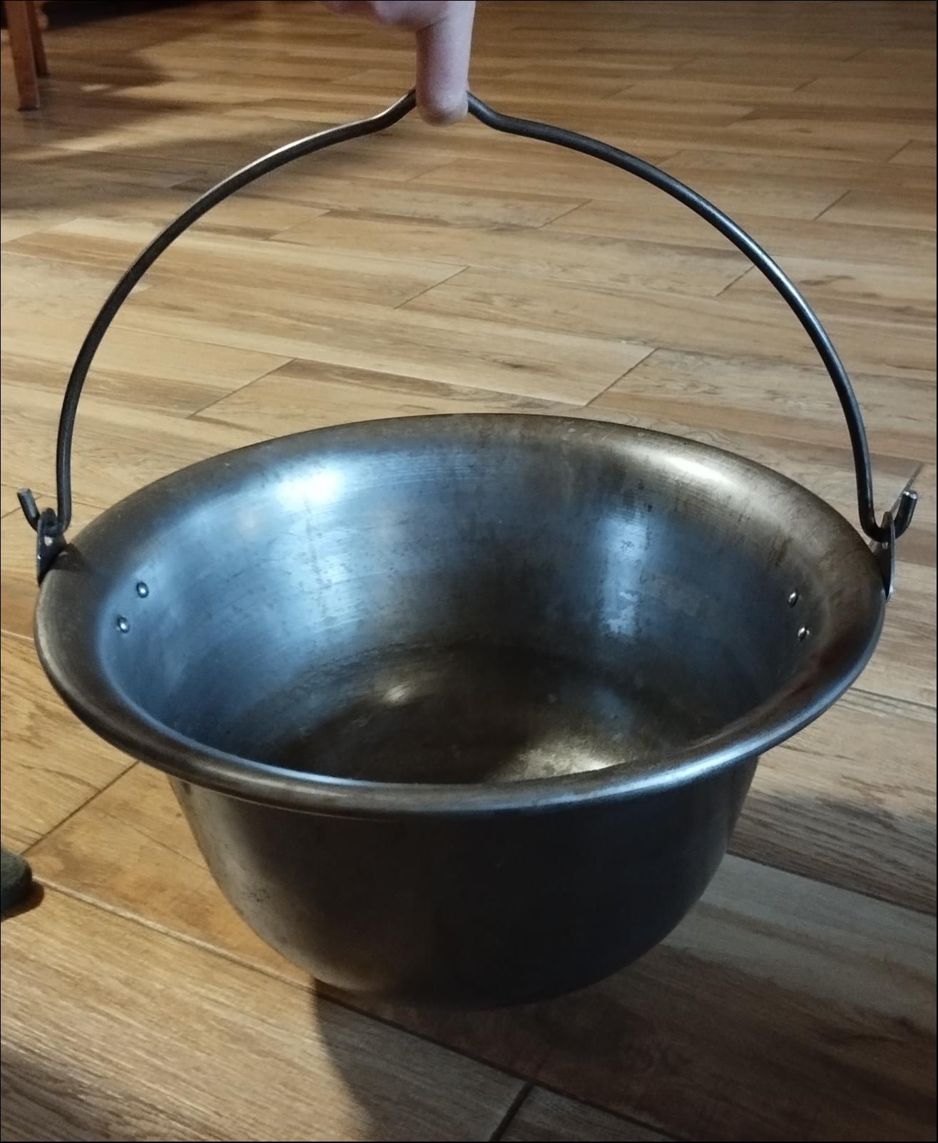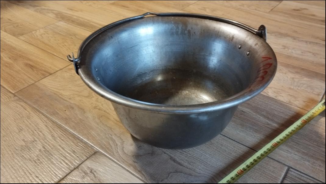 Cena: 1000,- Kč Prodám kovový kotlík na vaření. Horní průměr 34cm. Objem 6l. Používaný ale v dobrém stavu.