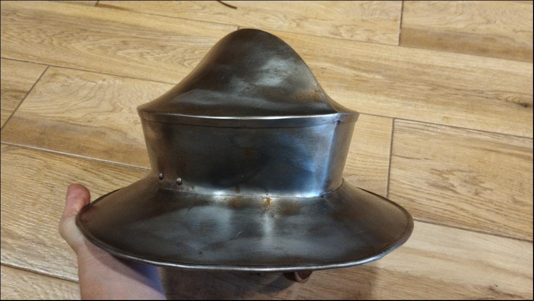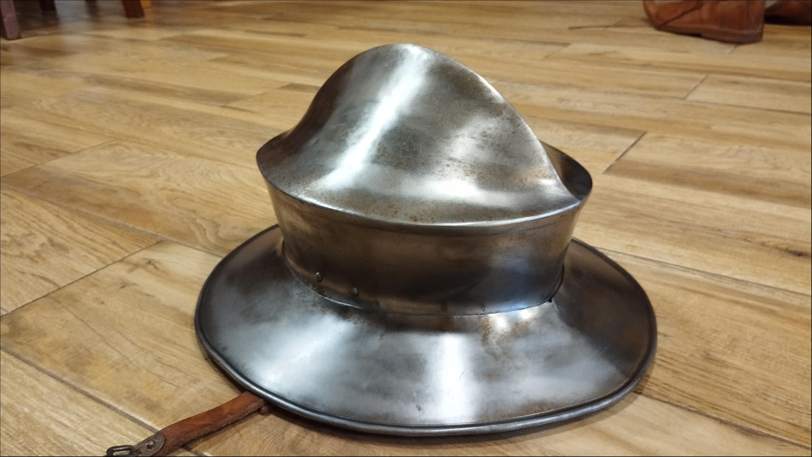Cena: 3000,- Kč Prodám plechový klobouk. Starší, ale v dobrém stavu. Síla plechu 1,5mm. Sedí na hlavu s obvodem 58-60cm + batvat. Cena 3000,- (+doprava) | |
