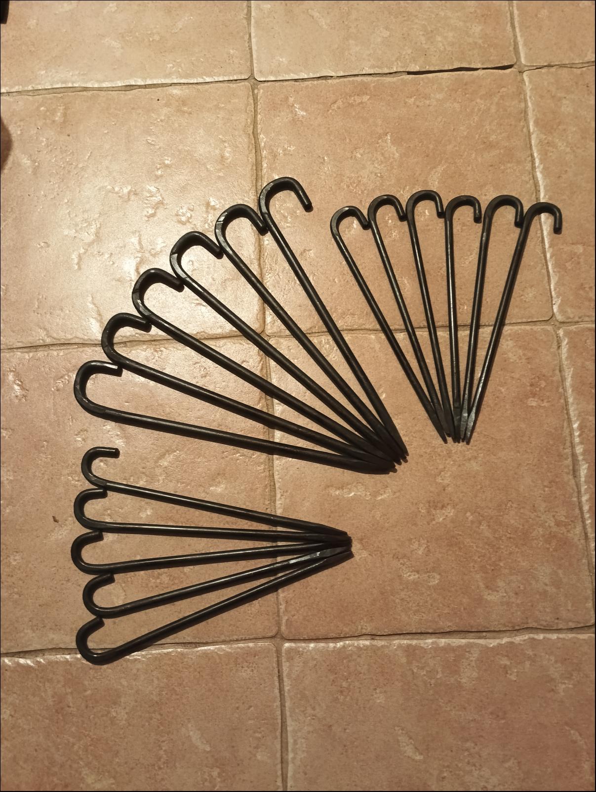 Zdravim, prodám stanové kované kolíky, 6x 10mm kus za 90 Kč, délka cca 31cm , 10x 8mm délka cca 27 cm kus za 70 Kč , při odběru všech najednou jeden kolik zdarma , jinak lze udělat jakékoliv množství atd v případě zájmu rád zodpovím v sz.