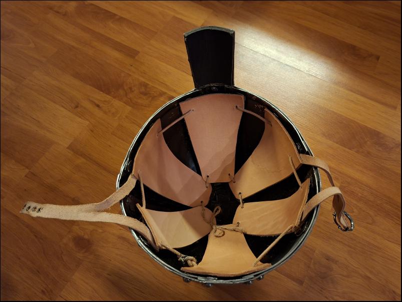 Petersenova typologie M, kovaná záštita a hlavice, jílec dřevěné oválné jádro potažené kůží, čepel bez zubů. Celková délka 77,5 cm, délka čepele 63,5 cm, šířka záštity 12,5 cm, šířka hlavice 8,5 cm, váha +-1100 g.