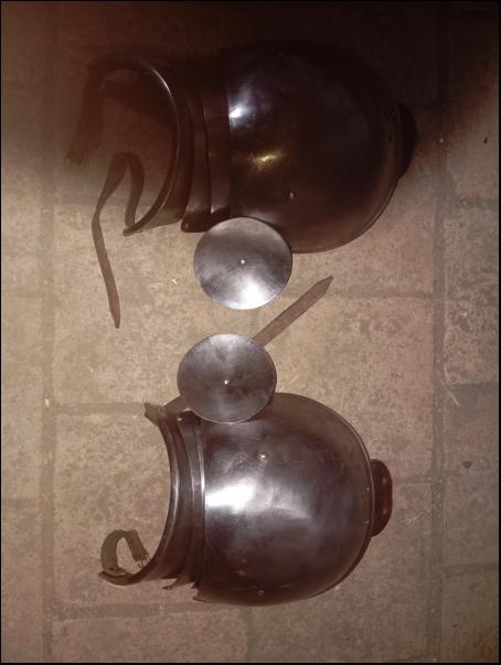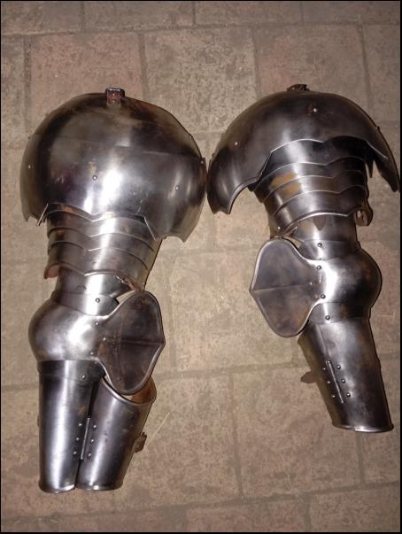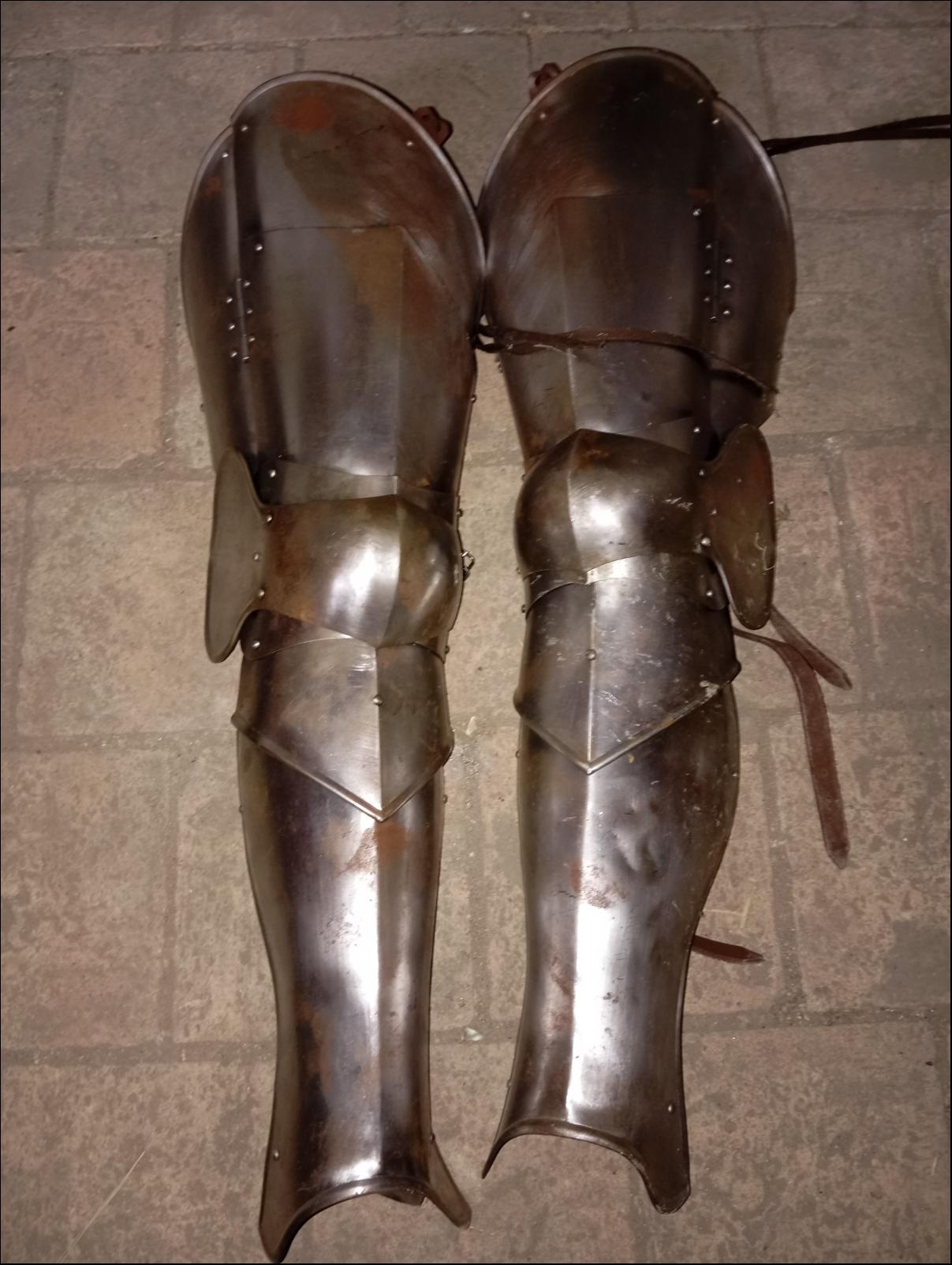1) plátové nohy (stehna + lýtka), je to komplet na zbroj 15. století - 8000,-