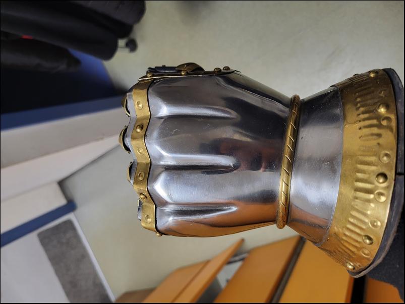Prodám plátové rukavice 'Churburg', 14. století. Materiál ocel a mosaz- 1,5-2mm. Velikost 9/10. Původní cena 4900kč. Předání Praha nebo zásilkovnou.